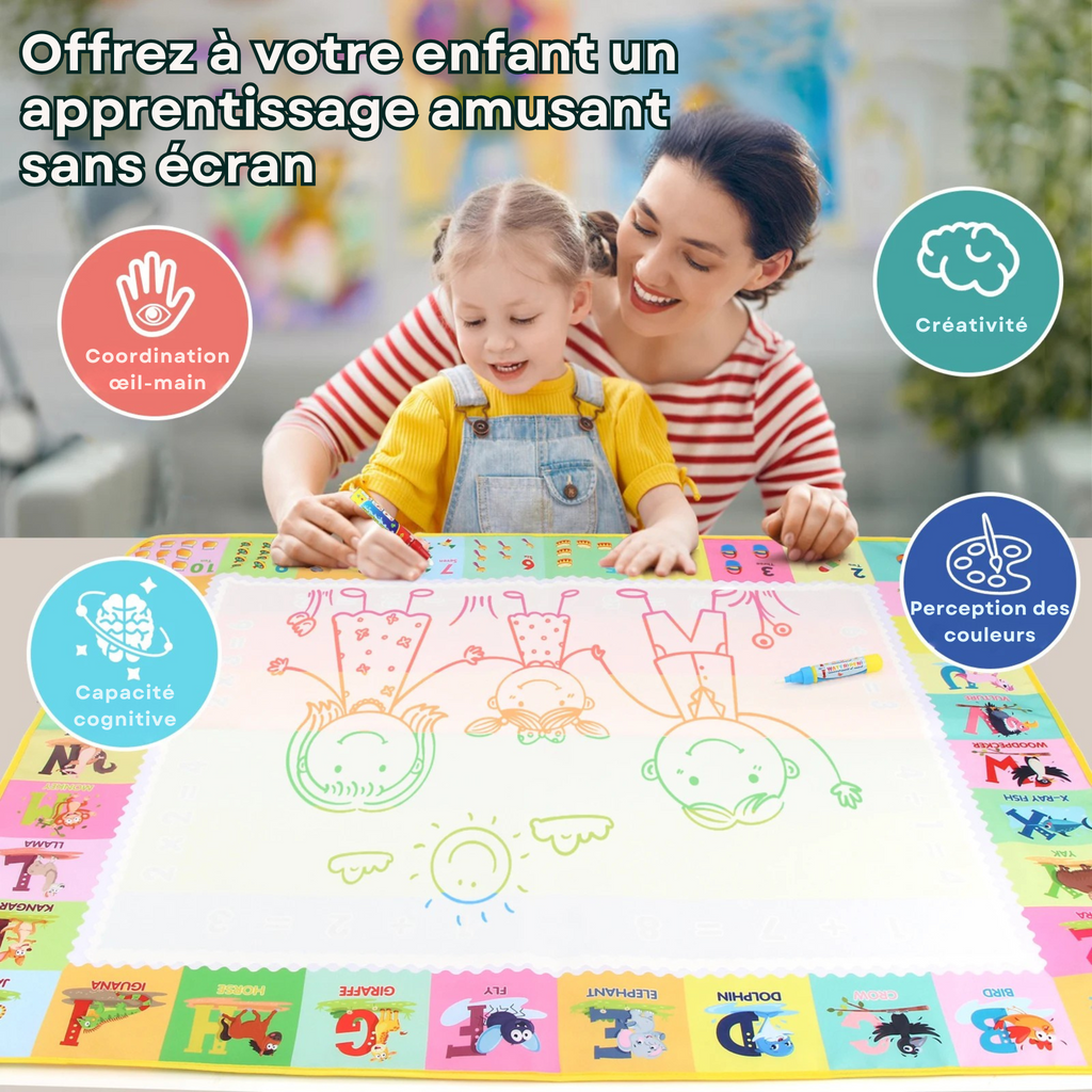 Finies les taches de peinture sur les vêtements, les murs et les sols. Avec notre toile magique à eau, créez un espace sûr et propre où les enfants peuvent libérer leur imagination sans aucune contrainte !